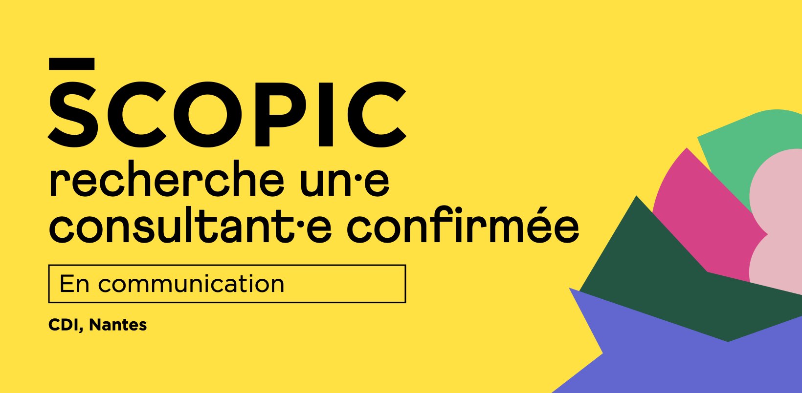 Envoyez votre lettre de motivation et votre CV avant le 4 janvier 2026 à recrutement@scopic.fr, en précisant le titre du poste en objet de votre e-mail. Merci !
