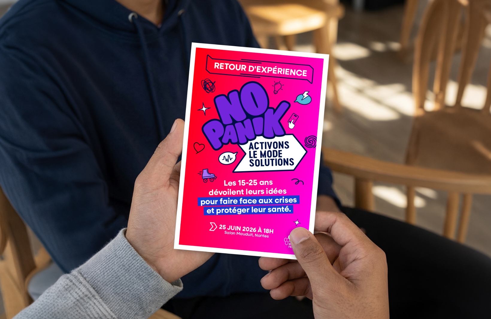 C’est pourquoi la Mutualité Française Pays de la Loire lance « No Panik – activons le mode solutions », une démarche de promotion santé pour développer la culture du risque chez les 15-25 ans et prévenir les enjeux psychosociaux associés.